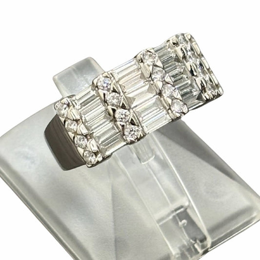 リング・指輪 K18WG&ダイヤモンド 1.60ct 13号 重量6.4g テスター済 ホワイトゴールド バゲットダイヤ シンプル レディース