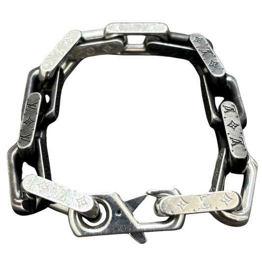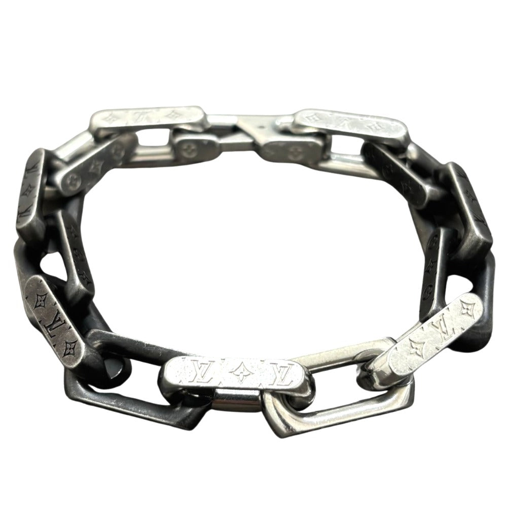 ルイヴィトン モノグラム チェーン M00687 Mサイズ 腕周り約17cm シルバー ブラック シンプル 型押し メンズ ブレスレット LOUIS VUITTON