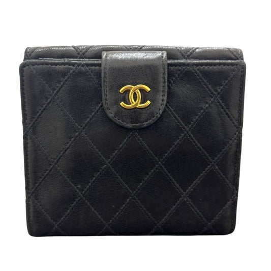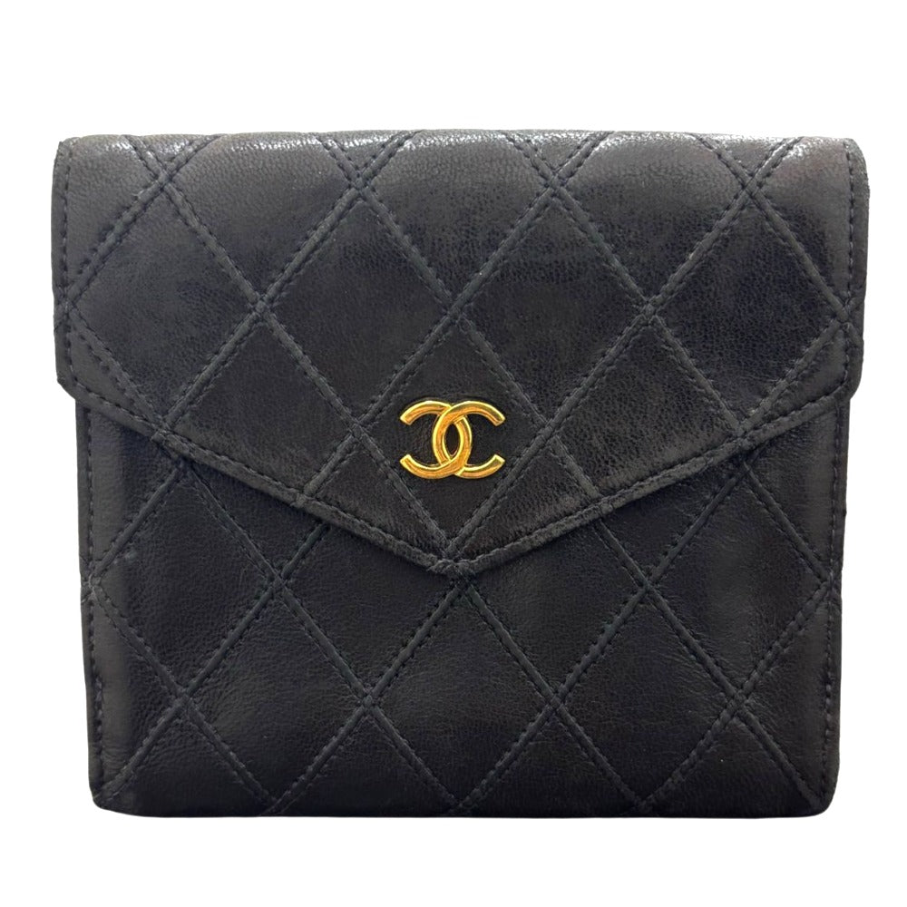シャネル 二つ折り財布 ビコローレ マトラッセ ゴールド金具 レザー ブラック シンプル コンパクト レディース CHANEL