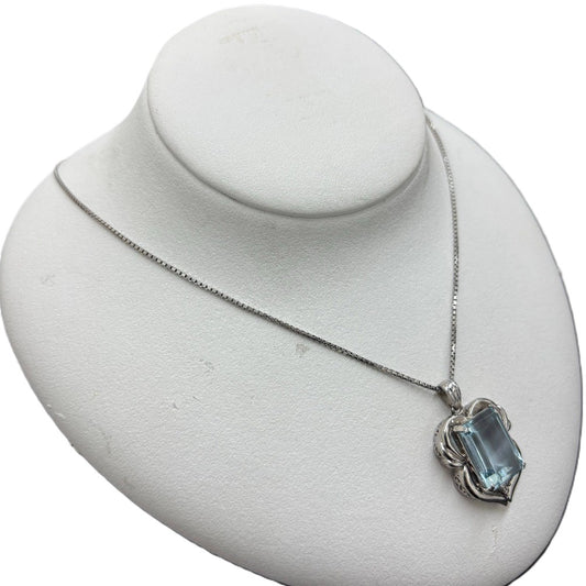 ネックレス Pt900×天然アクアマリン×ダイヤモンドトップ Pt850チェーン 長さ40cm 重量17.8g 幣局検定マーク(ホールマーク) レディース
