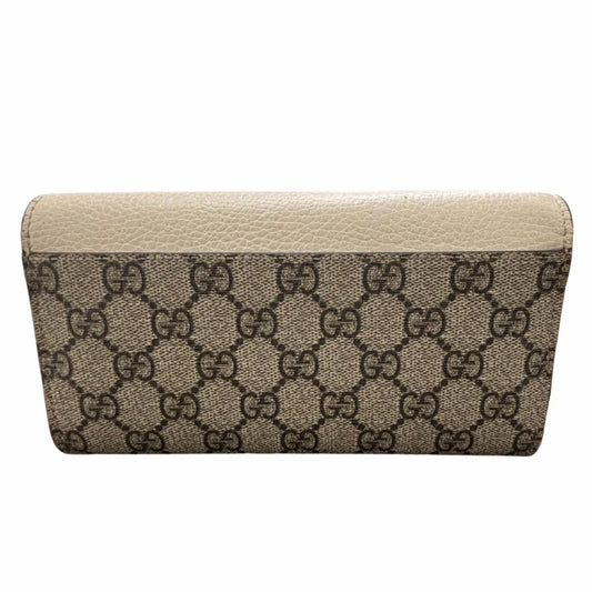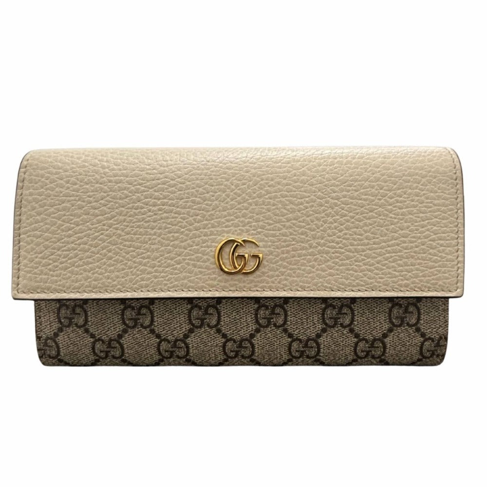 グッチ GGマーモント オフホワイト 456116 PVC レザー ゴールド金具 ブラウン キャンバス シンプル レディース 長財布 GUCCI