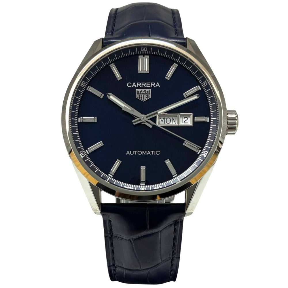 タグホイヤー カレラ デイデイト 41mm WBN2012 ブルー文字盤 レザーストラップ キャリバー5 自動巻き メンズ TAG HEUER 腕時計