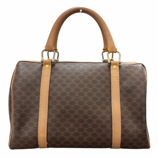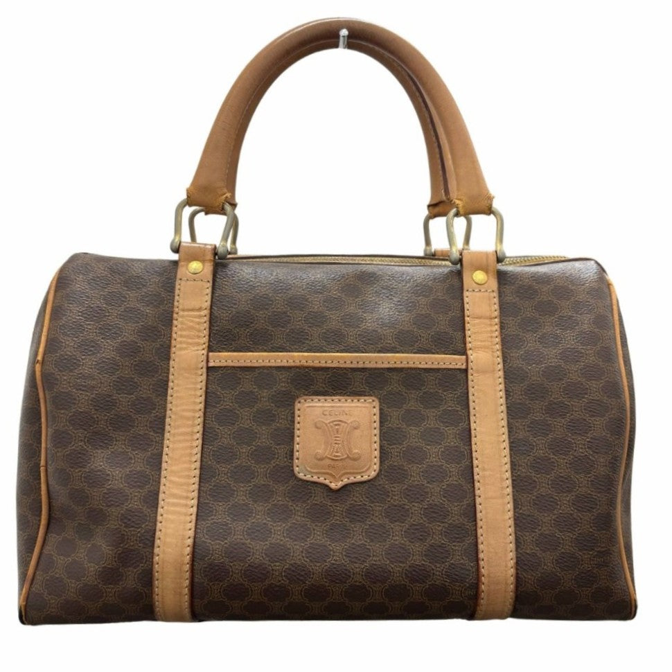 セリーヌ ミニ ボストンバッグ マカダム PVC レザー ブラウン シンプル ロゴ ゴールド金具 手提げ 旅行 鞄 ハンドバッグ レディース CELINE