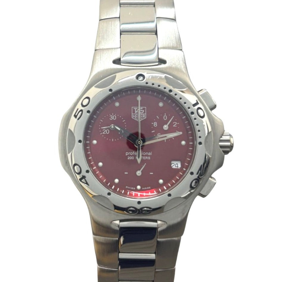 タグホイヤー キリウム プロフェッショナル CL1213 クロノグラフ クオーツ 電池交換済 稼働品 赤文字盤 ステンレス レディース TAG HEUER 腕時計