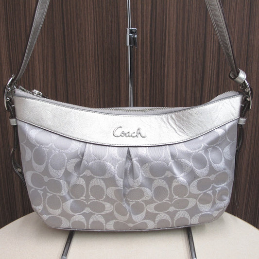 COACH コーチ ショルダーバッグ 斜め掛け シグネチャー ナイロン シルバー レディース