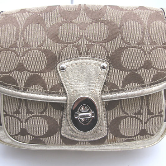 COACH コーチ ショルダーバッグ 斜め掛け ベージュ シグネチャー ナイロン レディース F13790