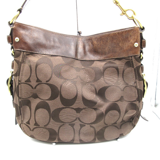 COACH コーチ ショルダーバッグ 正面ロゴ ブラウン シグネチャー ナイロン レザー レディース 12674