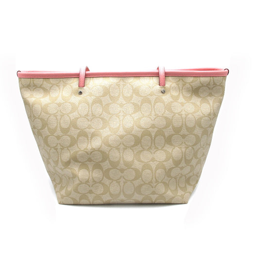 COACH コーチ ファスナー トートバッグ ショルダーバッグ F34104 シグネチャー PVC レザー ベージュ ピンク レディース