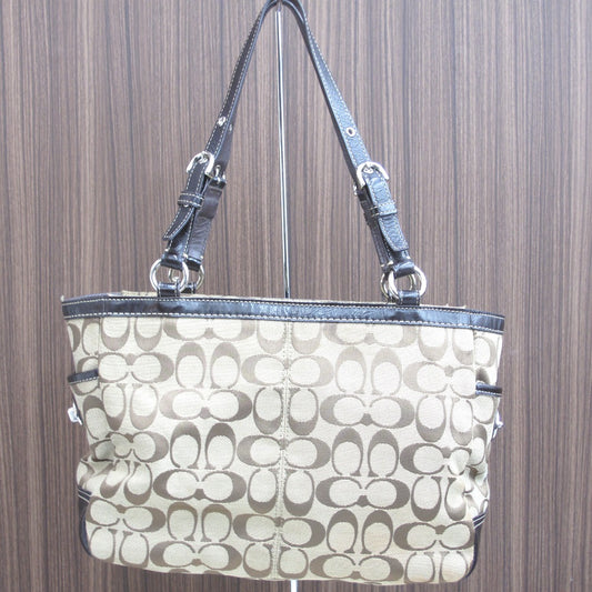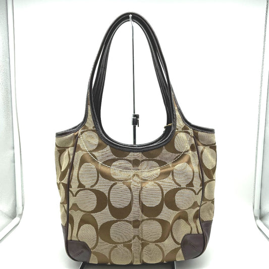 COACH コーチ ハンドバッグ トートバッグ ロゴ シグネチャー ベージュ ブラウン ナイロン レディース