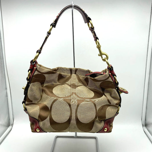 COACH コーチ ハンドバッグ ナイロン レザー ベージュ レッド シグネチャー レディース 10619