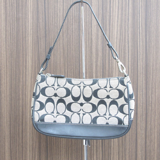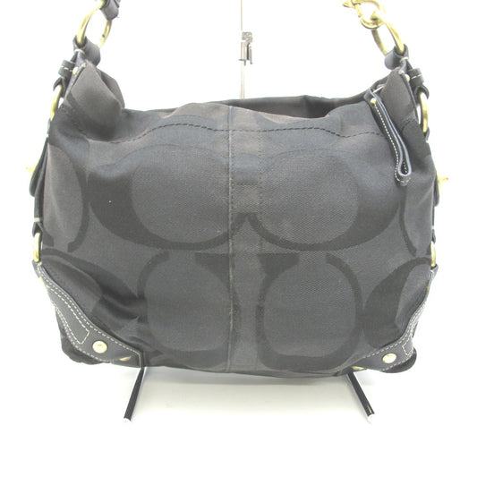COACH コーチ ハンドバッグ セミショルダーバッグ ブラック モノグラム ナイロン レザー レディース