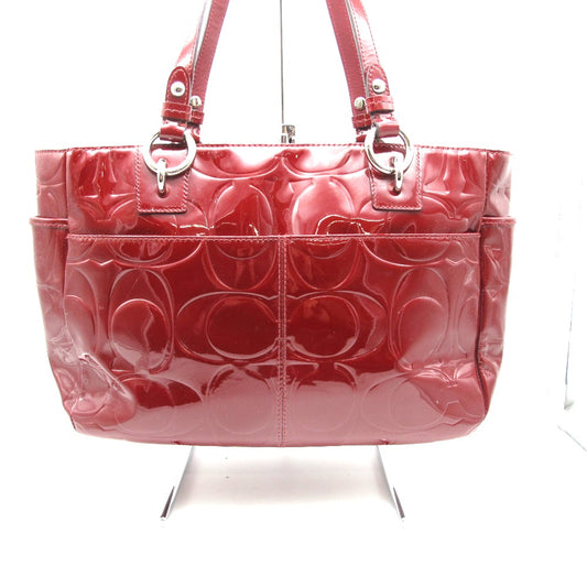 COACH コーチ ハンドバッグ 表ロゴ PVC エナメル ワインレッド レディース F17728
