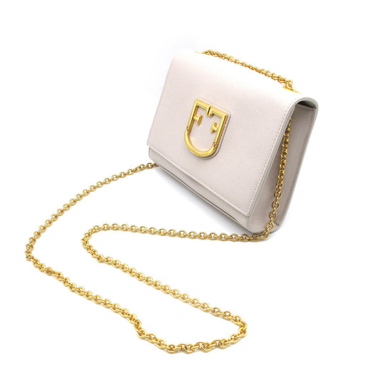 Furla フルラ VIVA ヴィヴァ チェーン ショルダーバッグ クロスボディ 肩掛け 斜め掛け ポシェット レザー ピンクベージュ レディース 1021380 美品