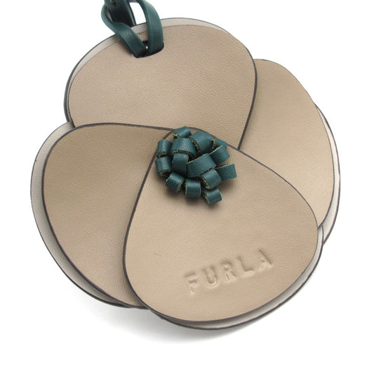 Furla フルラ レザー チャーム フラワー 花 バッグチャーム ベージュ グリーン レディース 美品