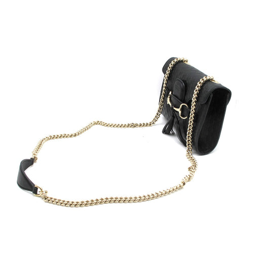 GUCCI グッチ エミリー マイクログッチシマ 449636 チェーンショルダーバッグ クロスボディ 斜め掛け ポシェット レザー ブラック アウトレット レディース 美品