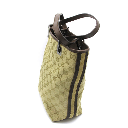 GUCCI グッチ トートバッグ ショルダーバッグ GGキャンバス レザー ウェブ サイドライン ベージュ ブラウン 31244 美品