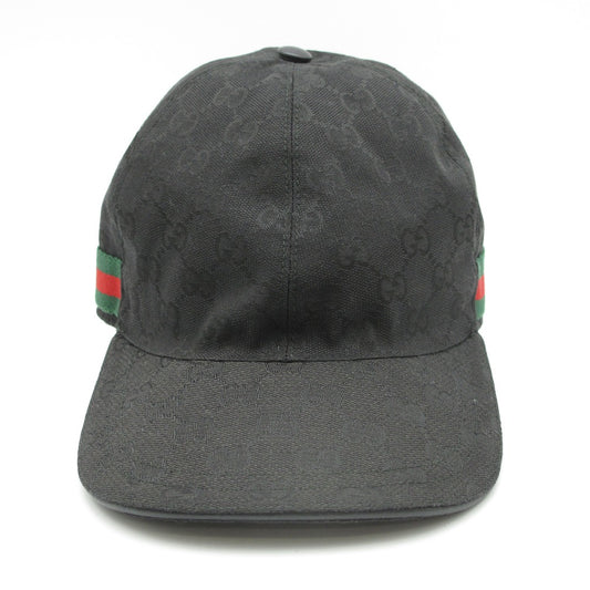 GUCCI グッチ ベースボールキャップ 200035 帽子 ベルクロ GGキャンバス シェリーライン ウェブリボン M 58 ブラック 美品