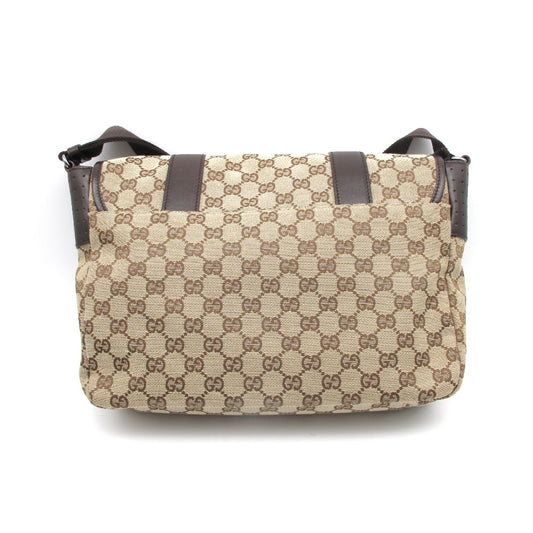 GUCCI グッチ メッセンジャーバッグ ショルダーバッグ クロスボディ 斜め掛け ベルクロ 145859 GG キャンバス レザー ベージュ メンズ レディース