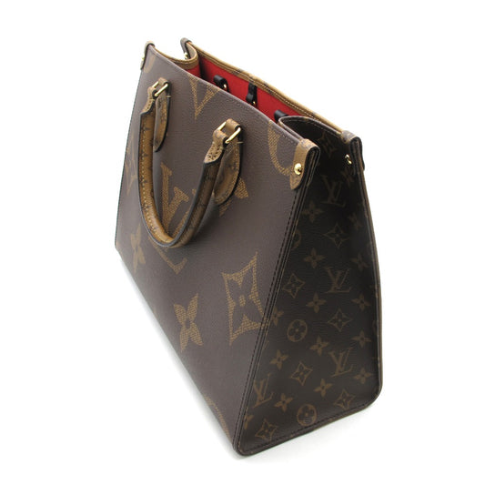 LOUIS VUITTON ルイ・ヴィトン オンザゴー MM モノグラム ジャイアント リバース M45321 トートバッグ ハンドバッグ ショルダーバッグ PVC レザー ブラウン 箱付き 新品同様品