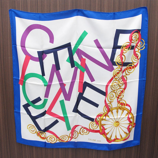 CELINE セリーヌ シルク スカーフ 大判 カレ ヴィンテージ ロゴ チェーン リボン レディース ブランド小物 服飾雑貨