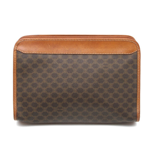 CELINE セリーヌ セカンドバッグ ロゴ型押し マカダム柄 クラッチ ポーチ PVC レザー ブラウン
