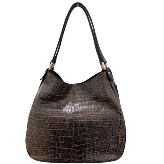 ハンドバッグ クロコ型押し レザー ハンドバッグ ユニセックス ダークパープル×ブラック ホーボーバッグ ワンショルダー A4収納可能