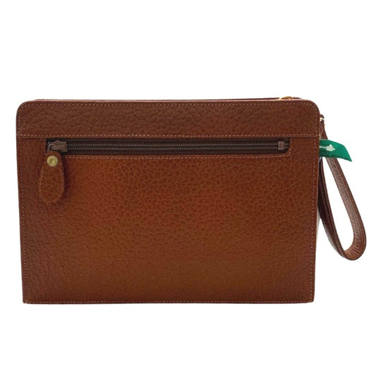 mila schon ミラショーン セカンドバッグ 96214 ストラップ付 クラッチバッグ セカンドバッグ ブラウン ユニセックス コンパクト レザー 牛革 ゴールド金具 未使用品