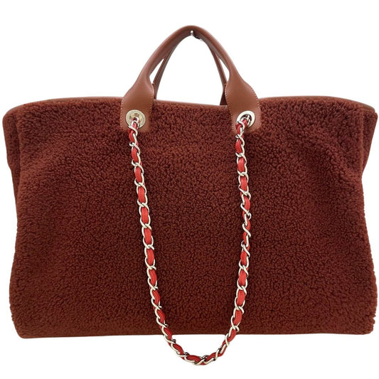CHANEL シャネル ショルダーバッグ ドーヴィルGM 2wayバッグ トートバッグ レザー ムートン ボア ブラウン シルバー金具 メンズ レディース