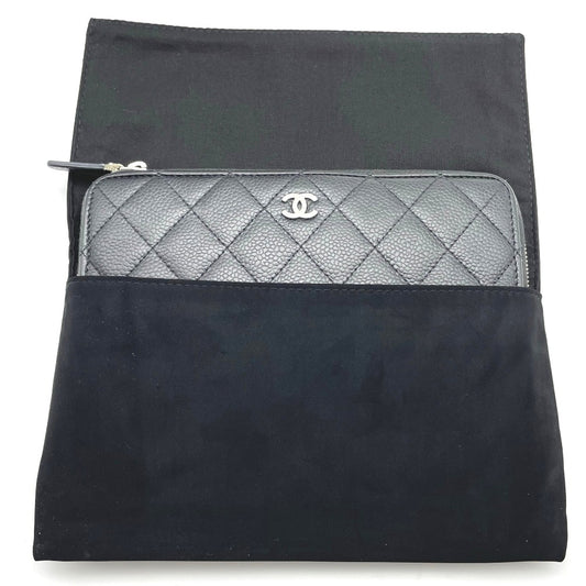 CHANEL シャネル 長財布 ラウンドファスナー キャビアスキン ココマーク 正面ロゴ レザー ブラック 黒 シルバー金具 レディース