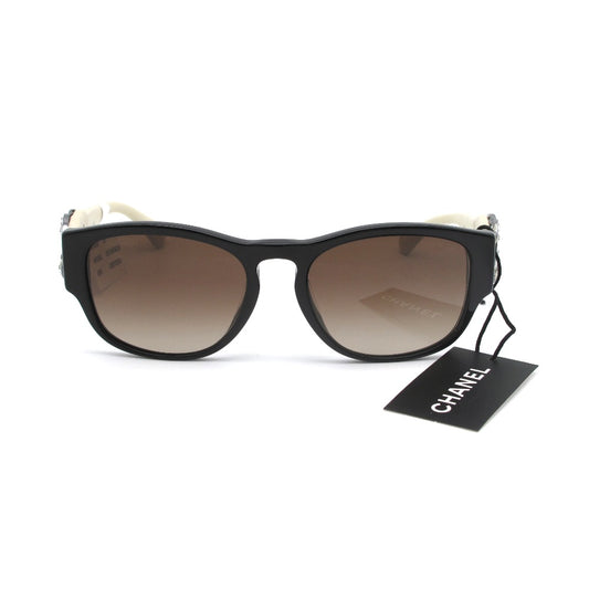 CHANEL シャネル サングラス 5454-Q-A ココマーク レザー ラインストーン 55 18 140 ブラック アイボリー ケース付き 眼鏡 アイウェア 未使用品