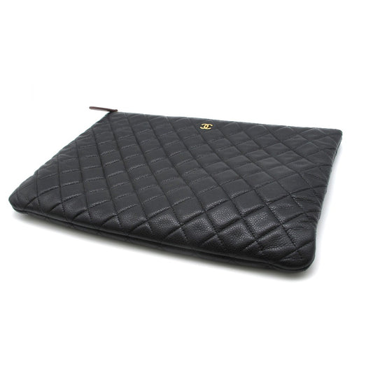 CHANEL シャネル キルティング クラッチバッグ キャビアスキン ココマーク マトラッセ ラージ ポーチ ドキュメントケース A82552 レザー ブラック ゴールド