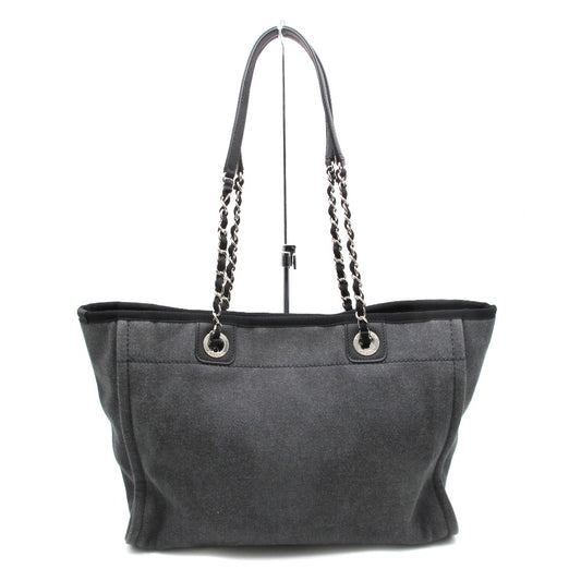 CHANEL シャネル ドーヴィルMM A67001 チェーン トートバッグ ショルダーバッグ ココマーク グレー ブラック シルバー キャンバス レザー レディース 美品