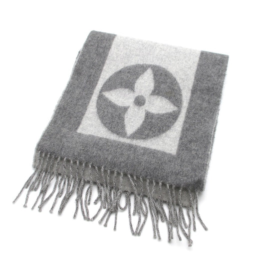LOUIS VUITTON ルイ・ヴィトン マフラー エシャルプカーディフ ウール アンゴラ グレー モノグラム ロゴ フリンジ 401486 美品