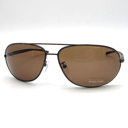 POLICE ポリス サングラス メガネフレーム メタルフレーム 光沢ありブラウン テンプル内側ラバー系素材 67 14 130 クロス・ケース付き 眼鏡 アイウェア S8182G