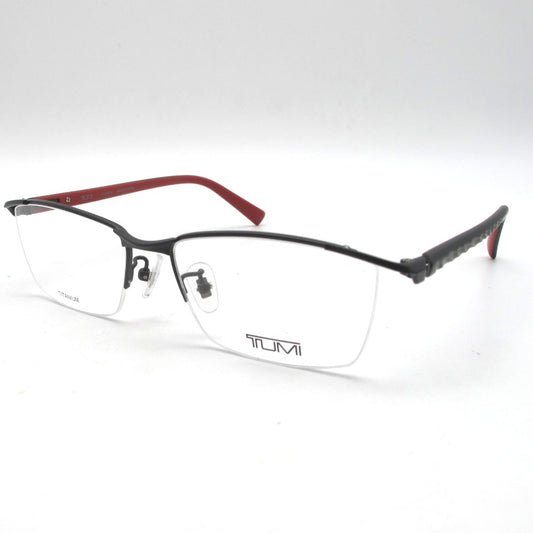 TUMI トゥミ サングラス メガネフレーム スクエア チタン製 ブラック レッド ナイロール プラスチックテンプル COL.0531 55-17-145 日本製 クロス ケース付き アイウェア VTU097J
