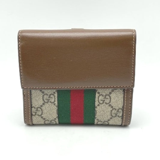 GUCCI グッチ 二つ折り財布 GGキャンバス GG GG柄 コンパクトウォレット キャンバス レザー ベージュ ブラウン 154258