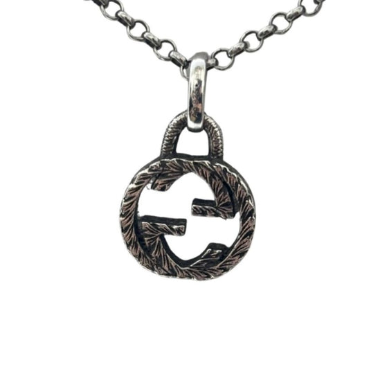 GUCCI グッチ ネックレス 455535-J8400-0811 エングレービング インターロッキングG ペンダント ユニセックス メンズ レディース