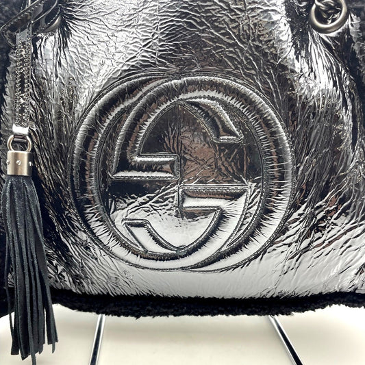 GUCCI グッチ ショルダーバッグ ムートン×パテントレザー 裏地ムートン ブラック ブラックチェーン ソーホー ポーチ付き 308982