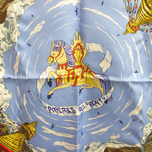 HERMES エルメス カレ90 PRIERES AU VENT 風の中の祈り シルクスカーフ ピンク レッド ブルー 寺院 民族 レディース 美品