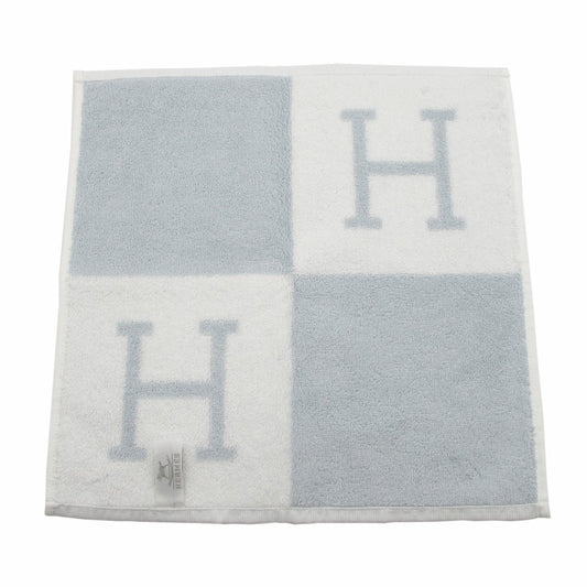 HERMES エルメス カレ タオル アヴァロン ハンドタオル ハンカチ Hロゴ コットン 綿100% ブルー ホワイト 箱・紙袋付き 未使用品