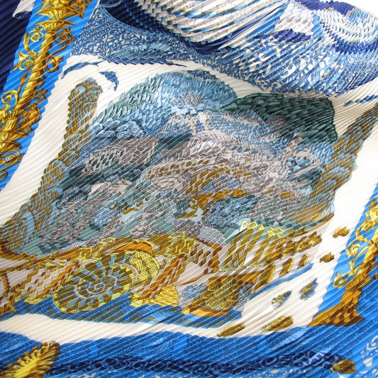 HERMES エルメス カレ 90 プリーツ L'ATLANTIDE アトランティス大陸 スカーフ ストール シルク 絹 ネイビー 箱付き