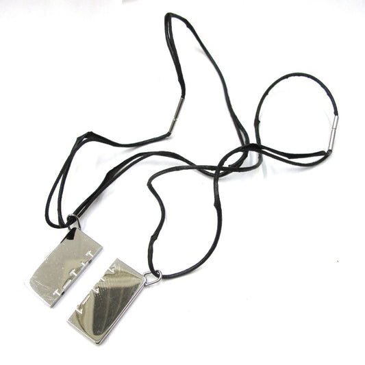 HERMES エルメス ネックレス シンボル 1+1=1 プレート ペア チョーカー メタル レザー 革 ブラック アクセサリー 難あり