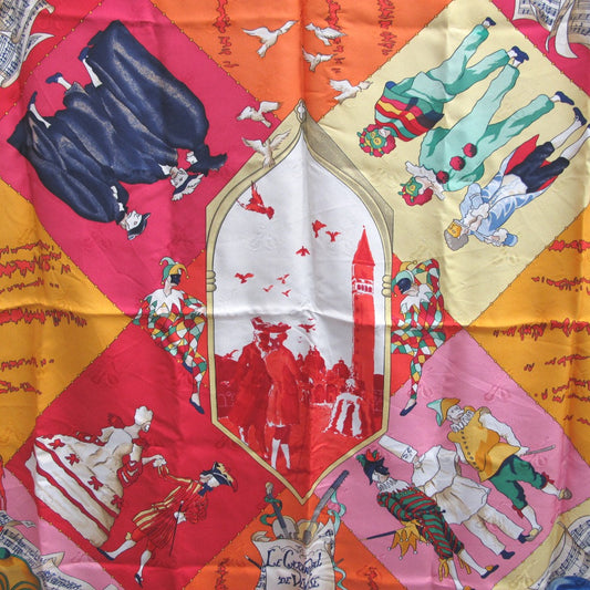 HERMES エルメス カレ90 LE CARNAVAL DE VENISE ベニスのカーニバル シルク スカーフ 大判 オレンジ マルチカラー レディース