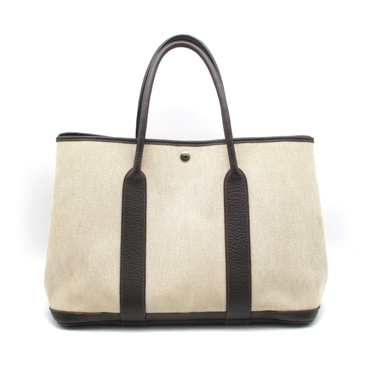 HERMES エルメス ガーデンパーティPM 36 トワルアッシュ レザー ブラウン ナチュラル □P刻印 シルバー金具 トートバッグ ハンドバッグ