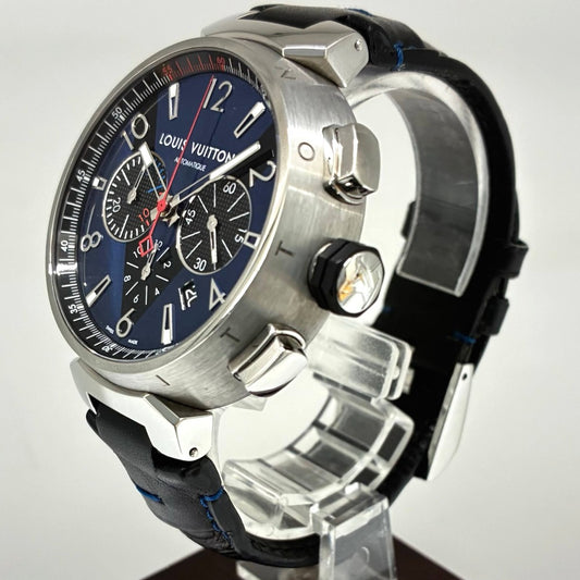 ルイ・ヴィトン Q102V タンブール クロノグラフ 44mm Vモチーフ ブルー文字盤 自動巻き メンズ LOUIS VUITTON 腕時計