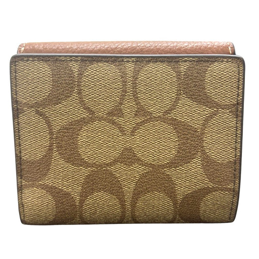 コーチ 財布 小銭入付 ブラウン CF472 ブロックドシグネチャー PVC レザー コンパクト ゴールド金具 レディース COACH