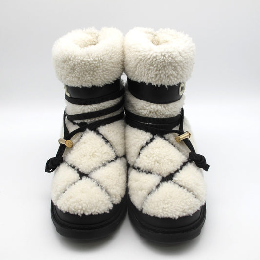 CHANEL シャネル ブーツ シアリング ムートン ボア ロゴ ココマーク ホワイト ブラック 37 24.0 レディース 箱付き G35342 美品