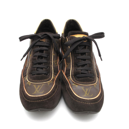 LOUIS VUITTON ルイ・ヴィトン LV スニーカー モノグラム スエード レザー ローカット 7.5 約26.5cm ブラウン シューズ 靴 メンズ