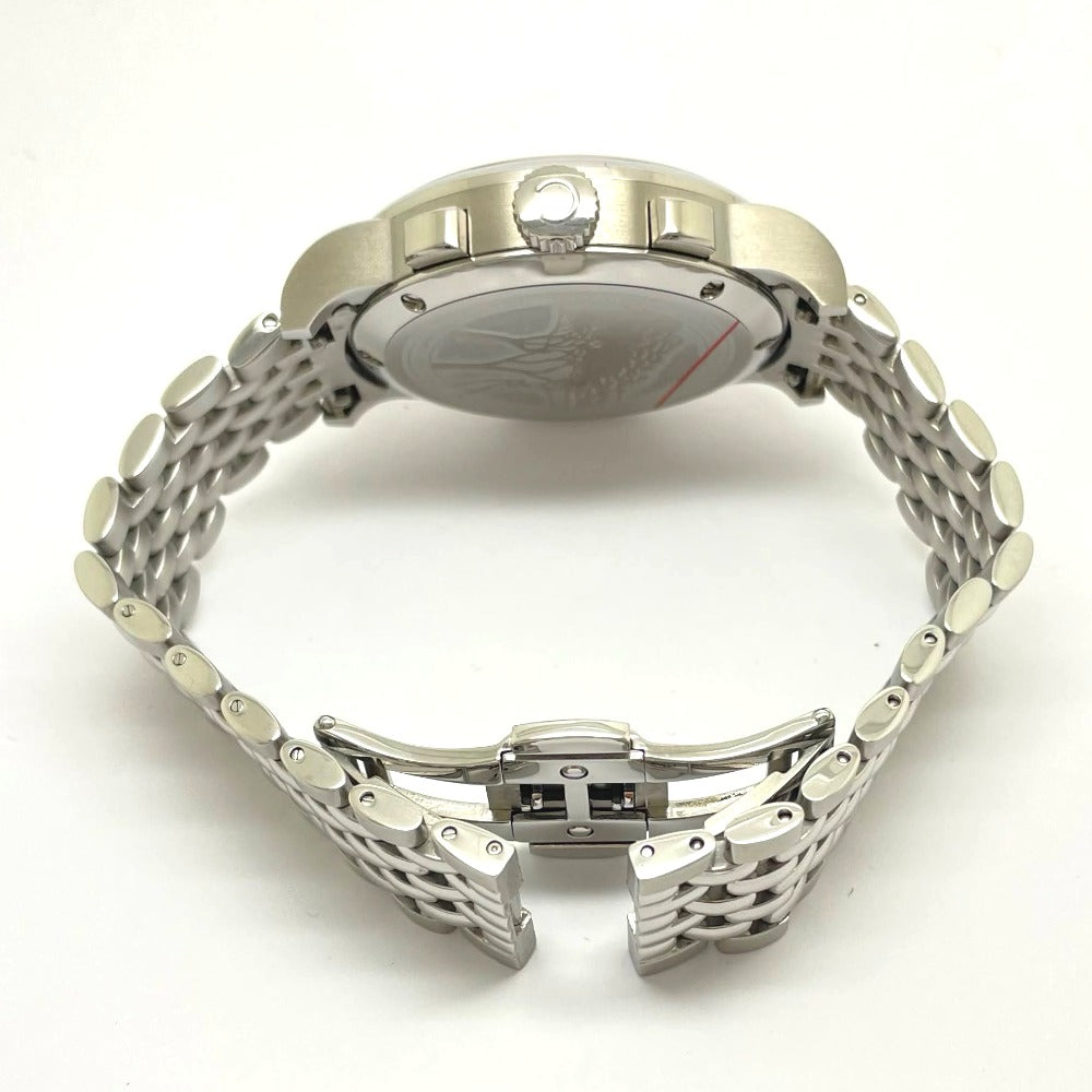純正の革ベルトは使用感なく、バックルに保護テープが張られています。 付属品として社外のメタルブレスが付属いたします。 写真にてご確認ください。 本体とメタルブレスに薄いスリキズがございます。 ガラスにキズはございません。 |