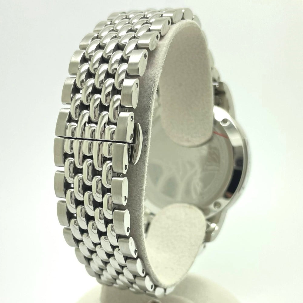 風防素材:サファイアガラス ベルトカラー:シルバー系 アナログ式・デジタル式:アナログ式 動力:電池式(クォーツ式) 形状:ラウンド |